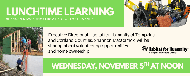 Read moreExecutive Director of Habitat for Humanity of Tompkins and Cortland Counties, Shannon MacCarrick, will be sharing about volunteering opportunities and