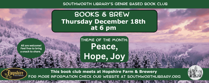 Read moreThe theme for this month’s genre book club is “Peace, Hope, Joy”. Stop by the library to get some suggestions