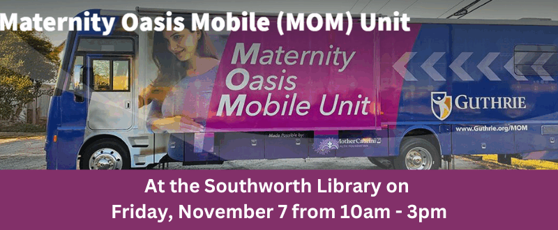Read moreThe Guthrie Maternity Oasis Mobile (MOM) Unit will be parked outside of the library on November 7, starting at 11am.