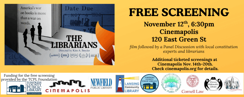 There will be a free screening of the new documentary “The Librarians” at Cinemapolis (120 East Green Street, Ithaca) on