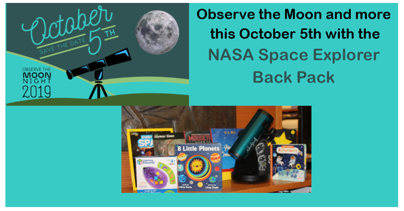 Telescope observing the moon and a photo of the telescopes that the library lends