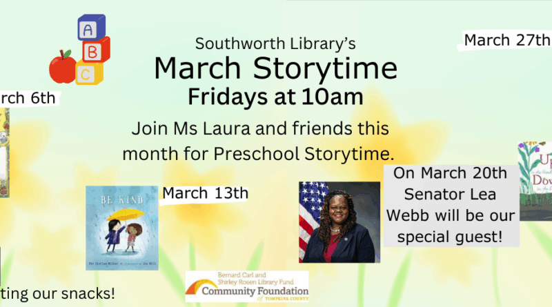 - March 20th – Our special guest will be Senator Lea Webb! We’ll be reading about Farms & Gardens – Our giveaway book will be Up in the Garden, Down in the Dirt by Kate Messner.